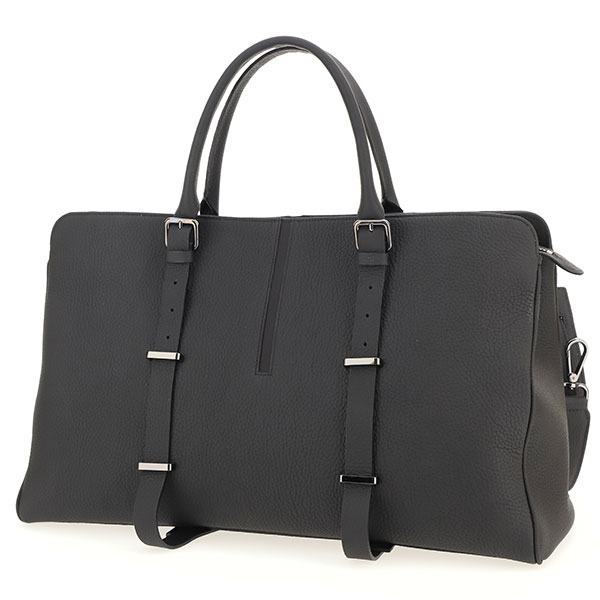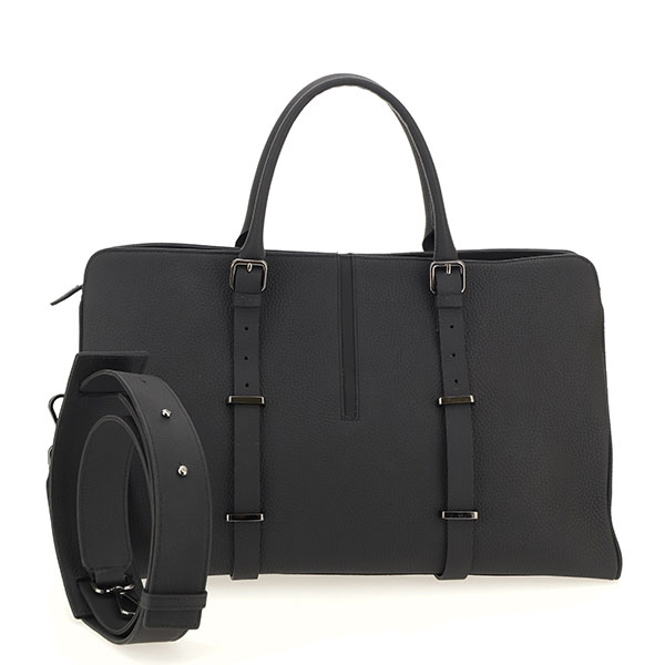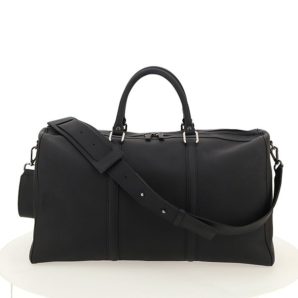 Minimal and sophisticated design for the weekend bag in pebbled calf leather. Shoulder strap.