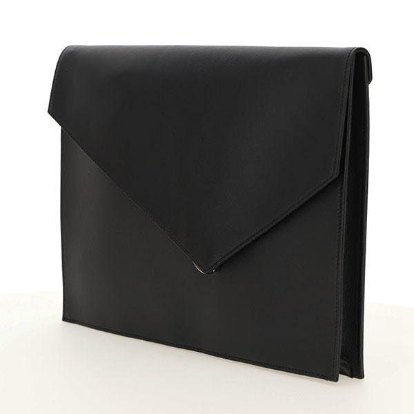 Simple and sophisticated minimal design for this asymmetrical laptop bag. Realized with soft calf leather