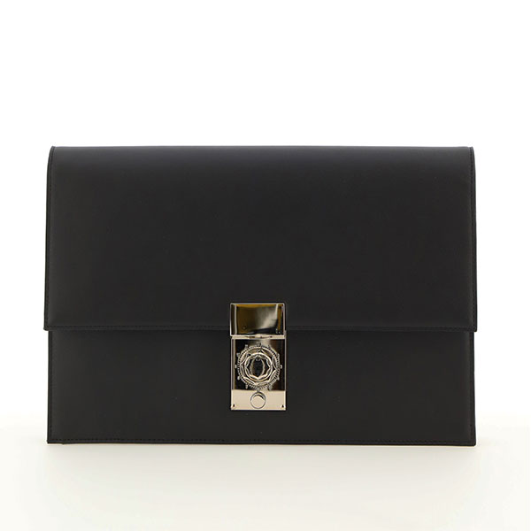 Ipad bag Realized with Black soft calf leather. The precious combination closure in brass give you the opportunity to close your bag with secret code.