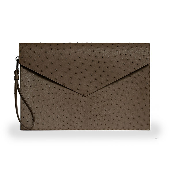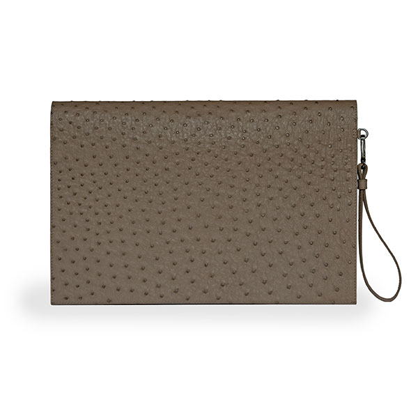 Realized in soft ostrich leather with handle.
